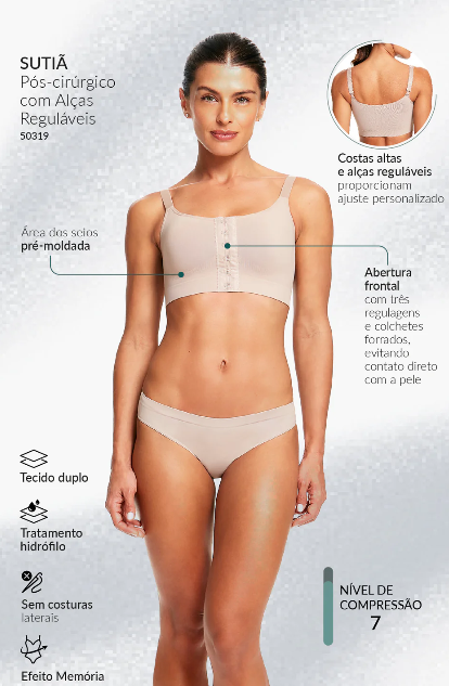 - A área dos seios é pré-moldada, e não há costuras laterais para maior conforto. O tratamento hidrófilo promove alta respirabilidade da pele.