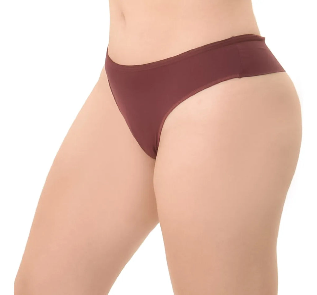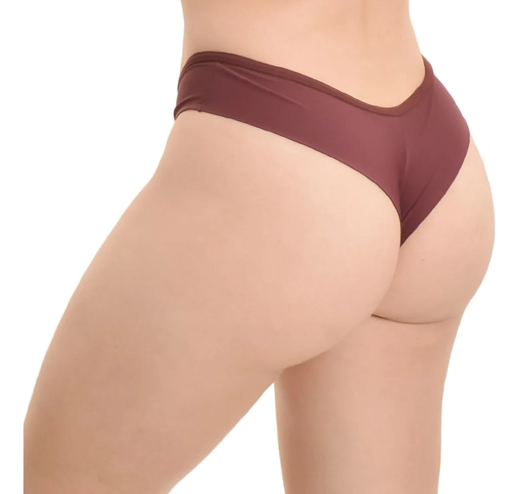 Calcinha confeccionada em microfibra, modelo fio dental (duplo). Possui acabamento na cava em overlock e lateral de aproximadamente 6 cm. COMPOSIÇÃO: 91% poliamida e 9% elastano